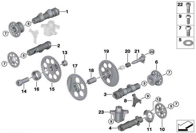 Wałek rozrządu, kółko, wałek pośredni