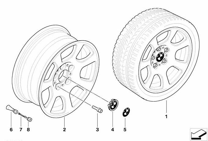 BMW alloy wheel, trapezoid spoke 134