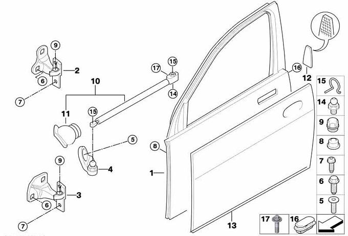 Drzwi przednie, zawias/hamulec