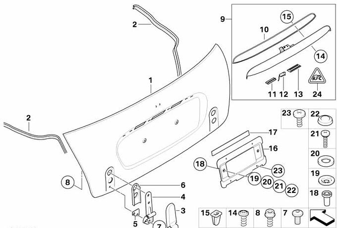 Zawias pokrywy bagażnika, lewy