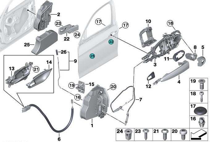 System zamykania drzwi z przodu