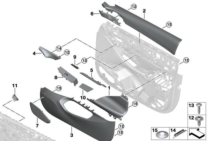 Elementy dod. tapicerki drzwi przednich