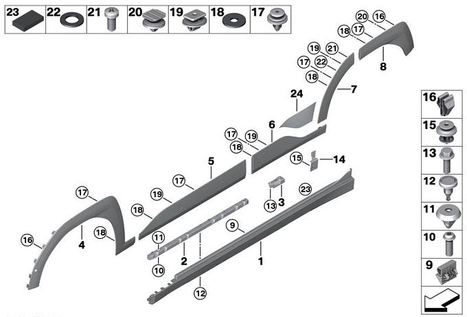 Osłona nadkola tył przednia część prawe