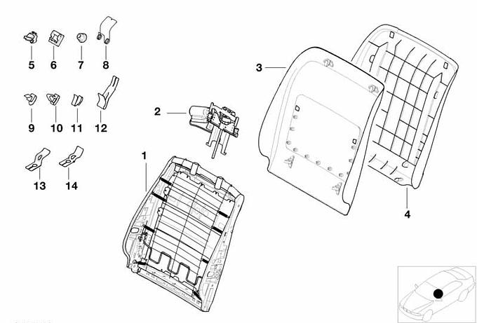 Fotel przedni-rama. oparcia/ściana tyl.