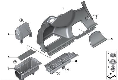 Schowek w obudowie bagażnika z lewej